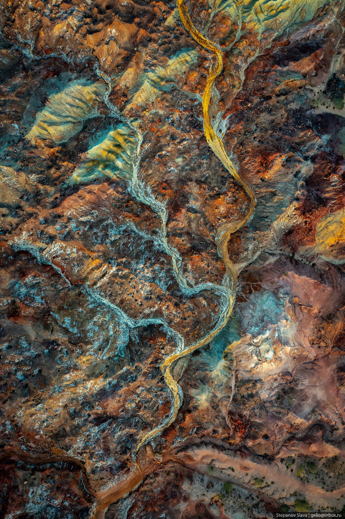 5. На закате картина меняется и блестящие вкрапления становятся похожи на реку.