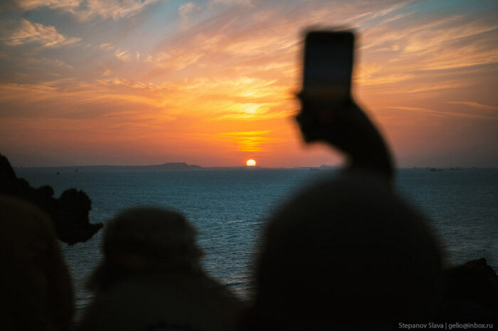 23. Туристы очень любят встречать закат в долине статуй. По расщелине можно спуститься прямо к обрыву над морем.