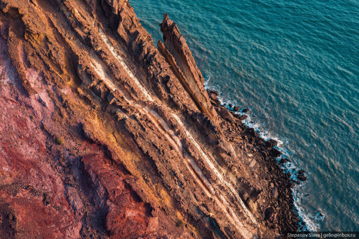 26. Скалы здесь как бы слоёные и «сделаны» из разных материалов. Геологи считают, что дело в вулканическом происхождении. Остров образовался около 600 млн лет назад и за эти годы ветры, соль и эрозия повлияли на его облик.