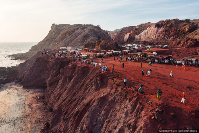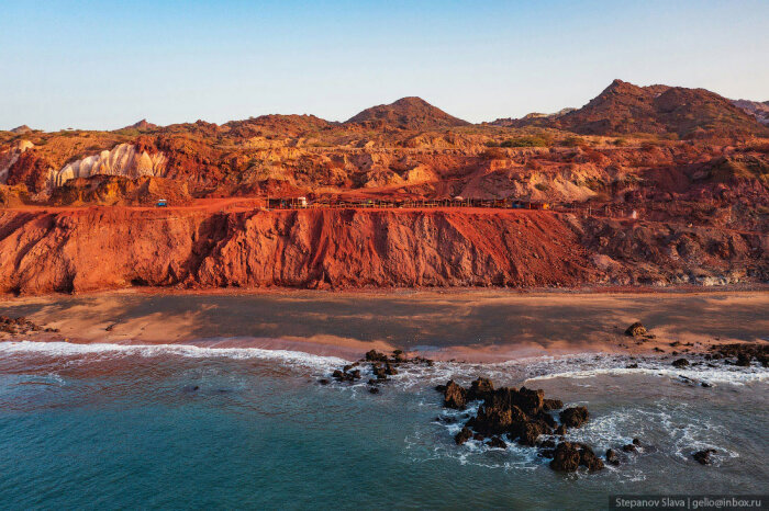 28. Красный пляж. В этом месте грунт богат оксидами железа — от них и вода на пляже становится красной. Красный грунт Ормуза высоко ценится — его экспортируют и используют для окраски тканей, производства стекла и керамики.