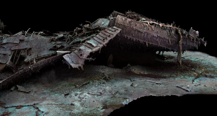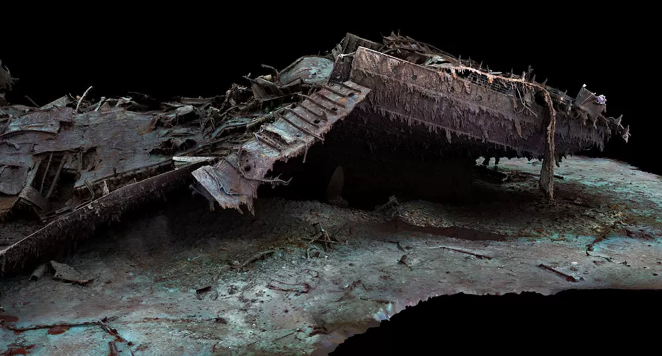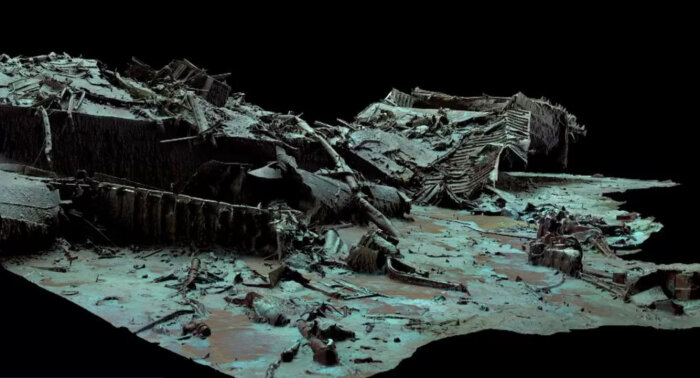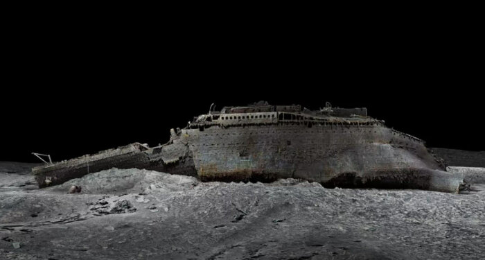 Новое сканирование полностью меняет взгляд на Титаник. Подводные аппараты, дистанционно управляемые командой на борту специализированного судна, провели более 200 часов, изучая длину и ширину затонувшего корабля. Они сделали более 700 000 изображений со всех сторон, создав точную 3D-реконструкцию.