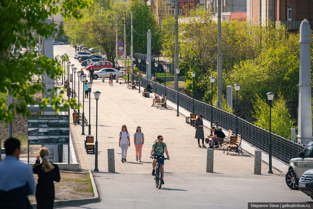 Пока этого моста не было, попасть на другой берег было сложно — летом делали временные мостики, зимой ходили по льду. Дело в том, что в половодье Каменка так сильно разливалась, что уносила в Обь даже некоторые постройки — а уж деревянные мосты точно не выдерживали напора. Около 40 лет по мосту ездили машины, но в 70-х Каменку пустили по коллектору, намыли слой песка из Оби и проложили поверх подземной реки улицу.