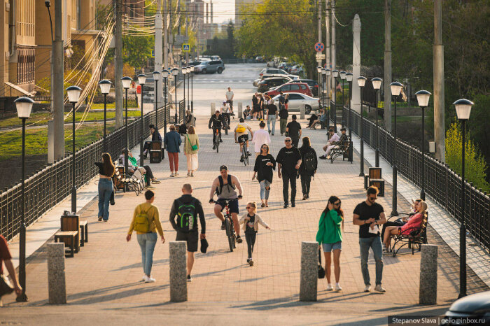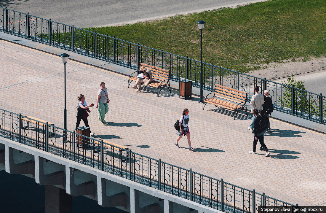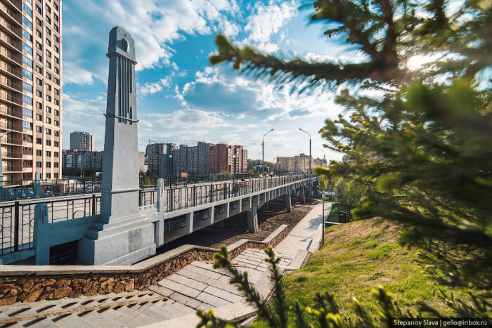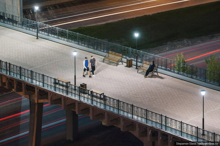 Строители выполнили ремонт опор и пролётных строений, установили новые деформационные швы. Пешеходную зону выложили тротуарной плиткой, установили декоративные перила, лавочки и урны.