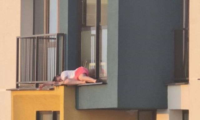 Эх, хорошо порой поспать на свежем воздухе. Особенно летом, когда на улице тепло и птички поют. Но... эта девушка из Минска явно выбрала для этого не лучшее место. Она решила вздремнуть на карнизе 24-го этажа и явно уютно устроилась. Само собой, барышня была под градусом и ей все было по барабану. Но не все равно было прохожим, которые вызвали МЧС. Спасатель из соседней квартиры благополучно затолкал ее обратно домой. Подразделения МЧС также разворачивали куб жизни на земле, но к счастью, он не пригодился.