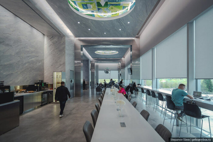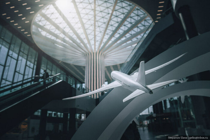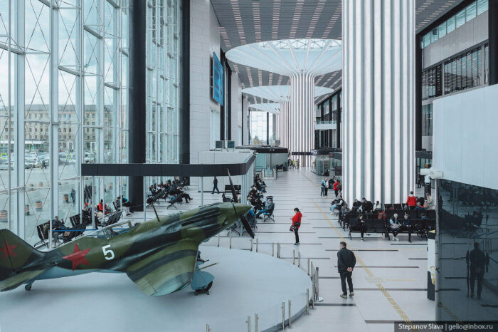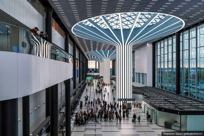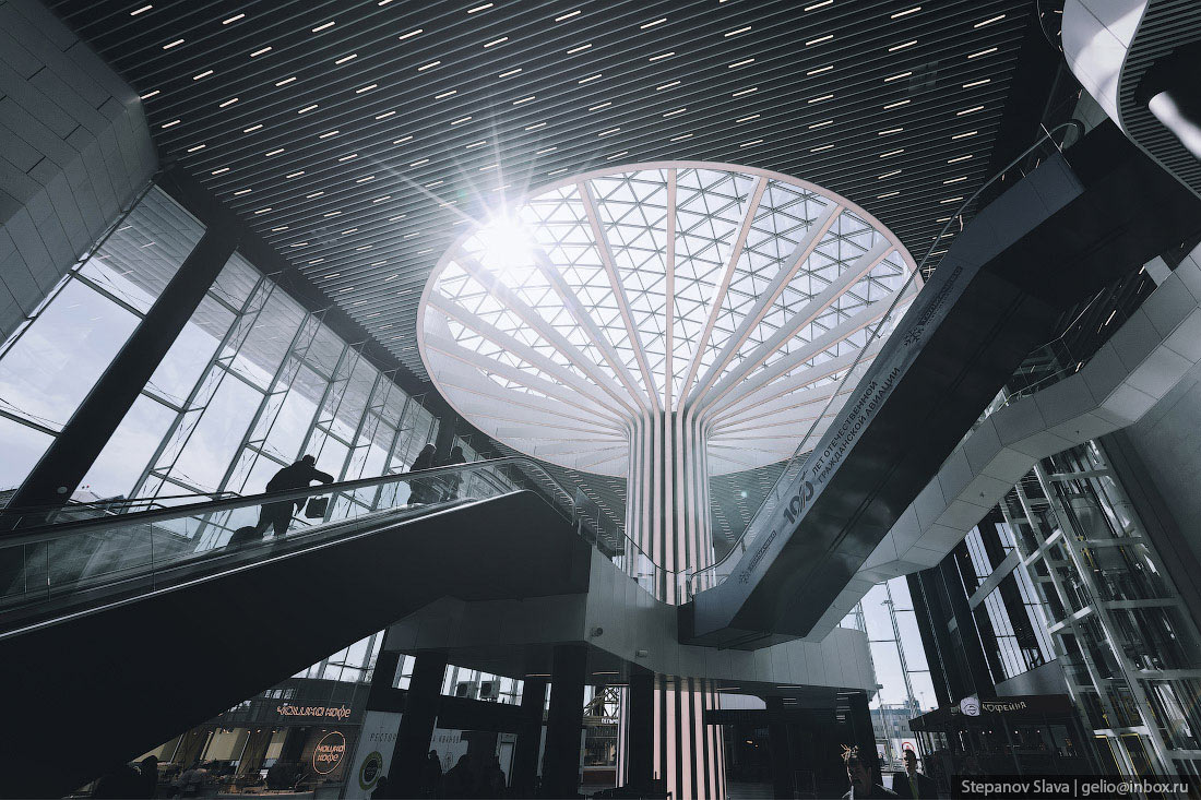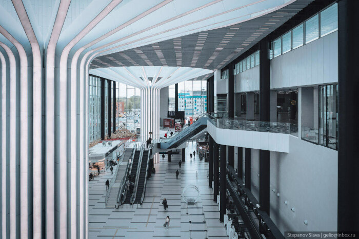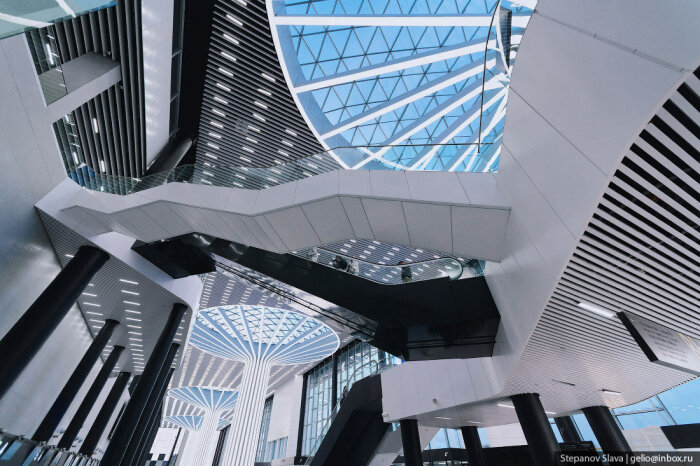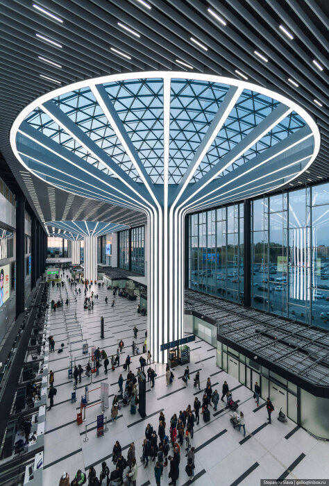 8. Проект разработан под руководством Сергей Кузнецова, главного архитектора Москвы. По задумке колонны внутри должны походить одновременно на турбины самолёта и огромные деревья.