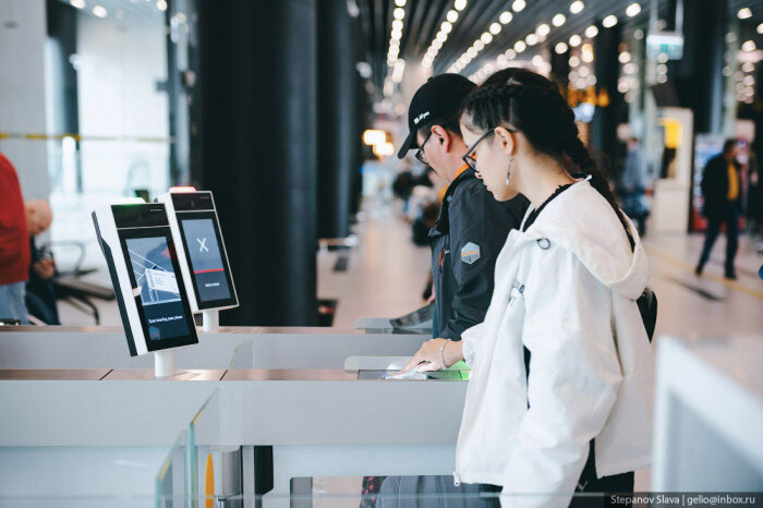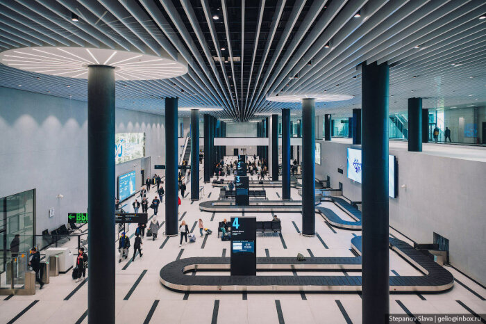 16. Самое просторное помещение нового терминала — зал регистрации на 54 стойки.