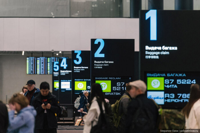 7. В 2023 году в Толмачёво ввели в эксплуатацию новый Сектор С аэровокзального комплекса, в будущем для пассажиров внутренних и международных рейсов будет работать единая зона регистрации.