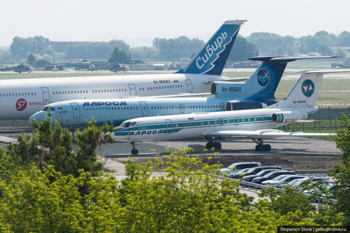 56. В аэропорту Толмачёво есть свой музей авиации под открытым небом. На привокзальной площади выставлено 3 самолёта — ТУ-134Б-3 , ту-154м и Ил-86.