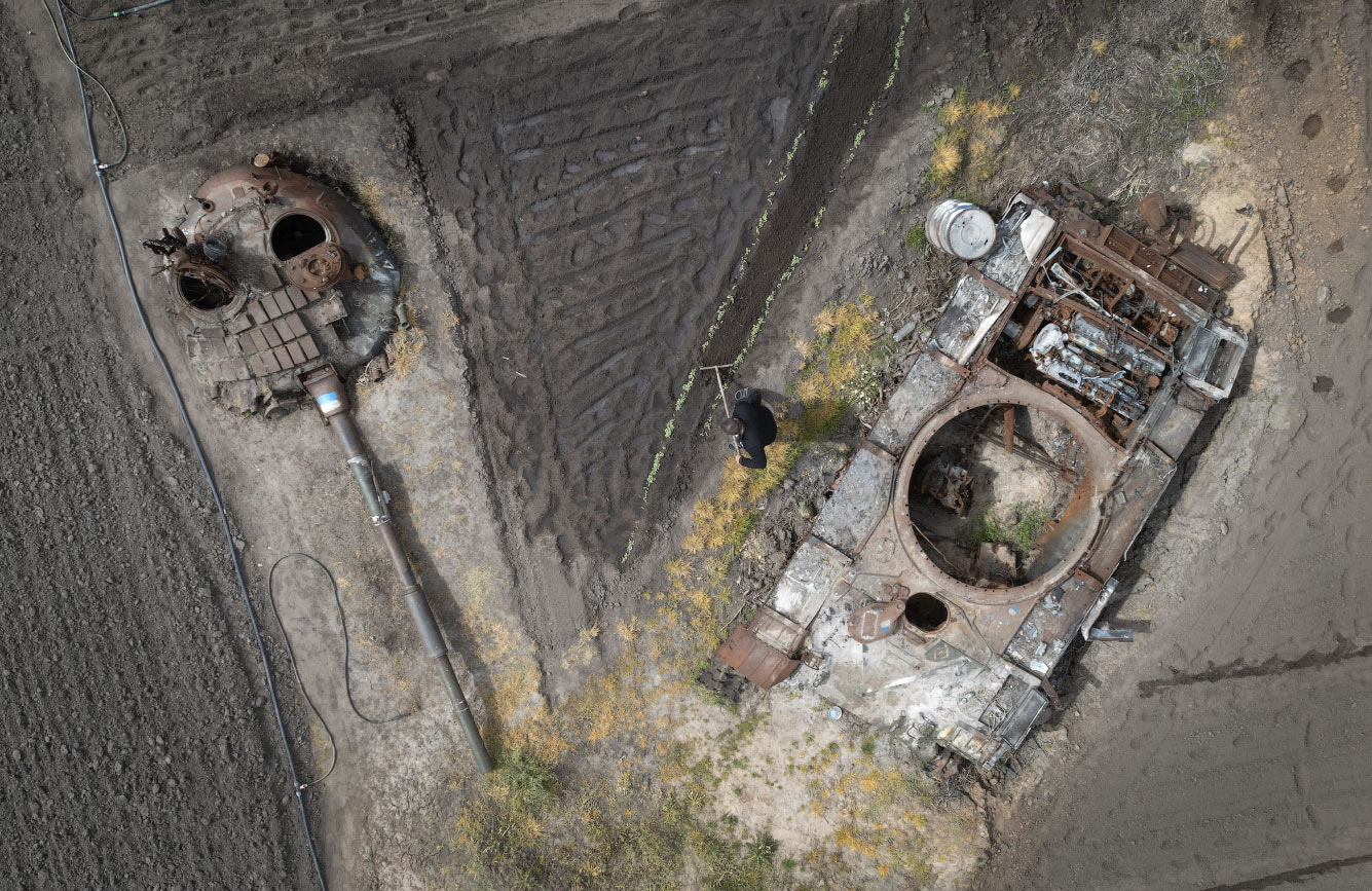Фермер работает в поле в селе Великая Дымерка, Киевская область. (Фото Efrem Lukatsky):