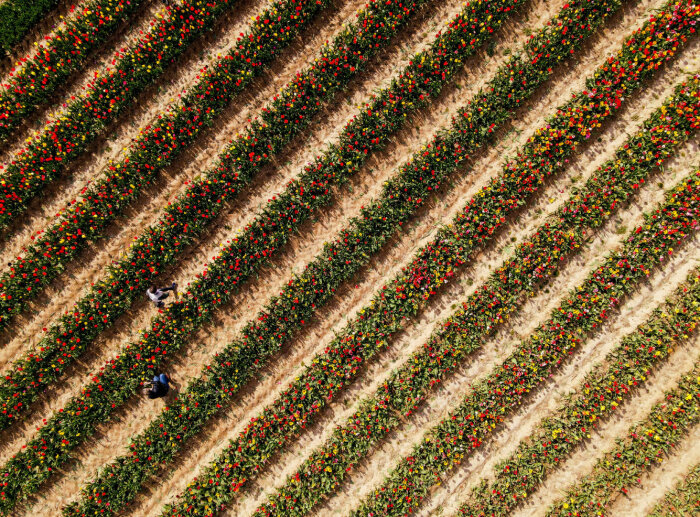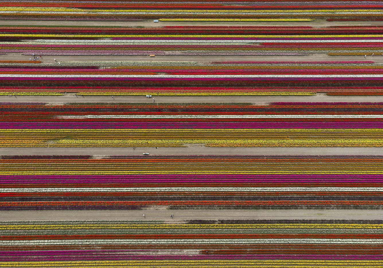 Люди срезают тюльпаны в открытом поле в Намюре, Бельгия. (Фото Olivier Hoslet):