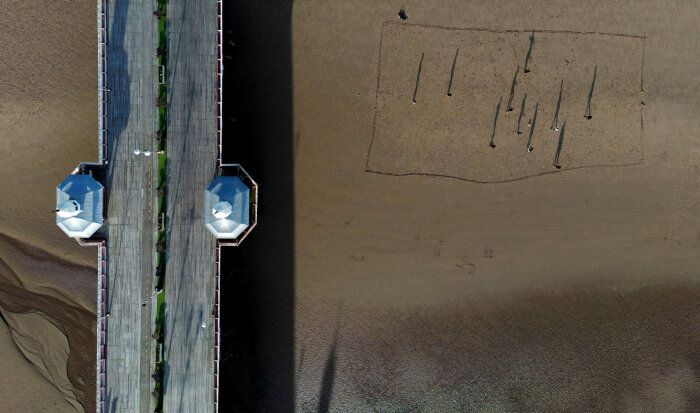 Люди играют в футбол на пляже Блэкпула в Блэкпуле, Великобритания. (Фото Carl Recine):