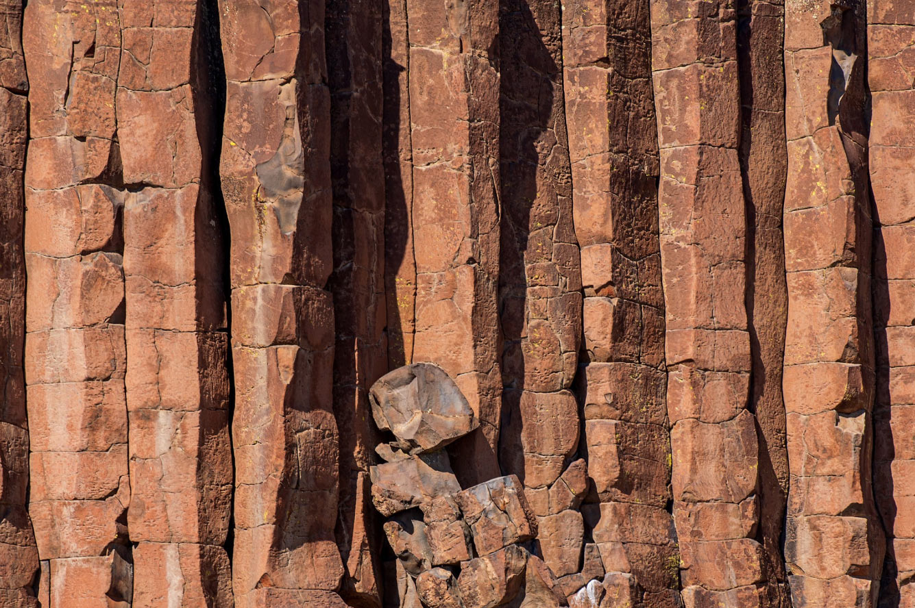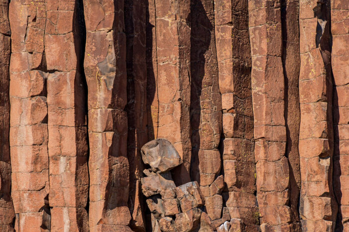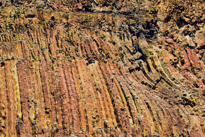 Всё дело в том, что разломы происходят далеко не на всю толщину лавового потока — ведь в толще потока сохраняется высокая температура, а значит и порода пластичнее и такого сильного стягивания еще не происходит… пока. Поэтому формирование всего столба — это прерывистый процесс и растут они поэтапно, образуя отдельные секции.
