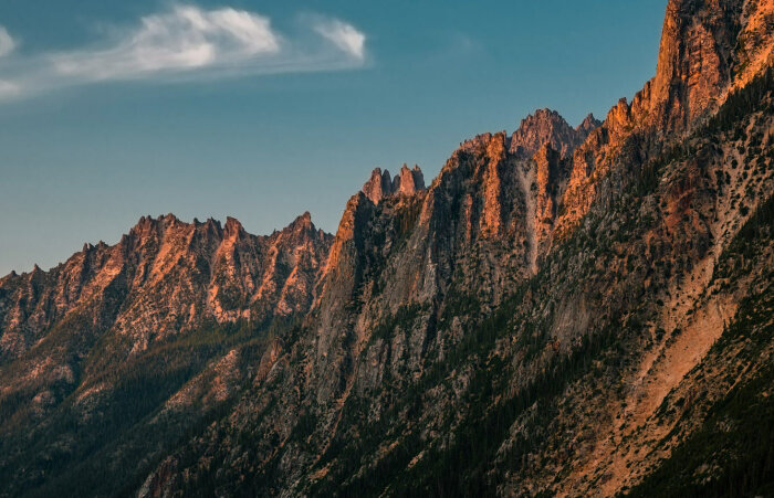 Перед заходом солнца скалолазы куда-то пропадают и всё вокруг заливается золотом.