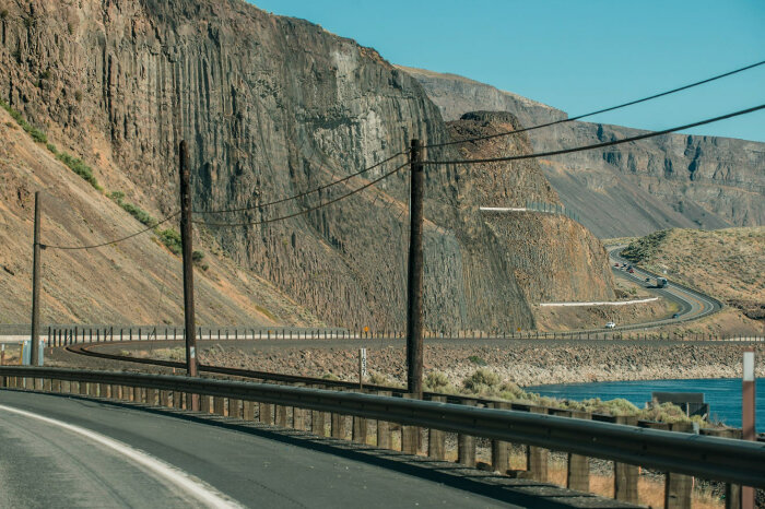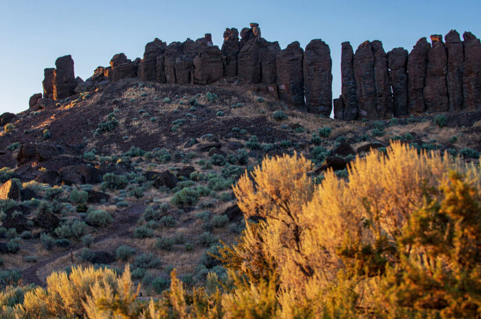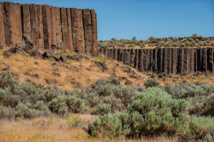 Чтобы увидеть базальтовые столбы, совсем не обязательно далеко ехать — ближайшие к нам есть на Бэйкере. Но здесь в центральном Вашингтоне вообще не нужно съезжать с дороги — главное ехать не поперек, а как бы вдоль — с севера на юг или обратно, примерно от канадского Оканагана и вплоть до границы штата (для подписчиков на Патреоне я выложу карту идеального замкнутого маршрута — «базальтовое кольцо Вашингтона», если угодно).