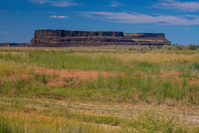 Во-первых, 14 – 17 млн. лет назад здесь разразилась вулканическая активность, остатки которой сегодня нам известны как Йеллоустоун] . Только вместо взрывных извержений здесь медленно выходили на поверхность и текли потоки лавы — застывая и наслаиваясь друг на друга — как в наши дни это происходит на Гавайах, только в тысячи раз сильнее. Отсюда произошли сотни наложенных друг на друга слоёв базальта, общей толщиной более 3 км — одно из самых больших формирований базальта в истории планеты площадью 225 тыс, км 2 и занимающее 1/3 всего штата Вашингтон.