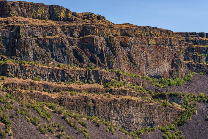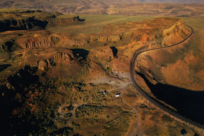 Всего таких слоёв — несколько сотен друг поверх друга, и вся эта красота уходит на 3 км вглубь. Как в случае с айсбергами, мы только лишь видим их верхушку, и то во многом благодаря Миссульскому наводнению, которое промыло в них широкие каньоны.