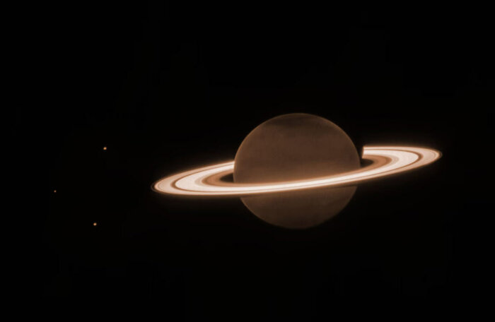Сатурн — шестая планета по удалённости от Солнца и вторая по размерам планета в Солнечной системе после Юпитера. Сатурн классифицируется как газовая планета-гигант. В основном Сатурн состоит из водорода, с примесями гелия и следами воды, метана, аммиака и тяжёлых элементов. Скорость ветра на Сатурне может достигать местами 1800 км/ч. (Фото NASA; ESA; CSA; STSc; M. Tiscareno; M. Hedman):