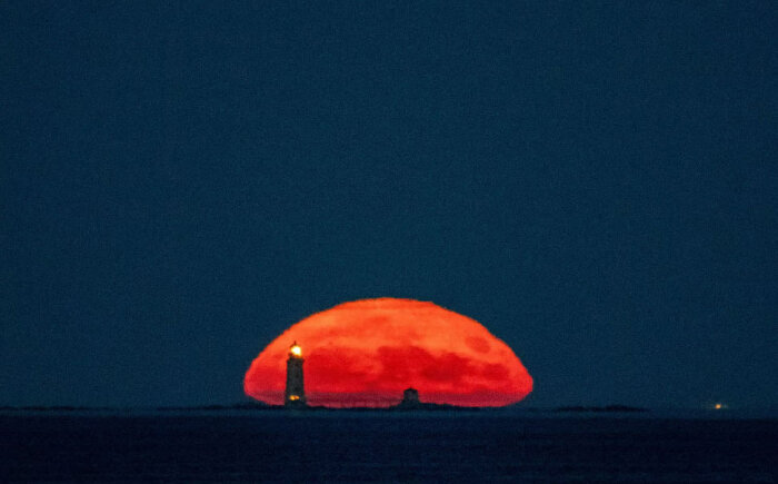 Суперлуние происходит тогда, когда Луна находится на наименьшем расстоянии от Земли. Так, во время Осетрового суперлуния она приблизилась к планете на 23 000 км. Такое природное явление заставляет Луну казаться больше и ярче, чем обычно. (Фото Joseph Prezioso):