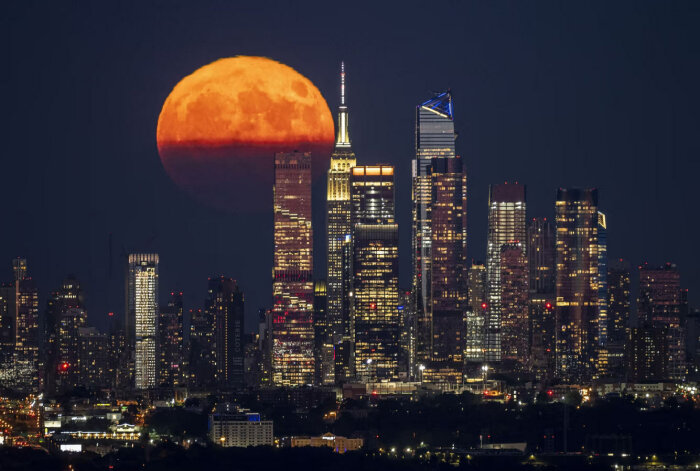 Луна восходит над горизонтом Нью-Йорка. (Фото Fatih Aktas):