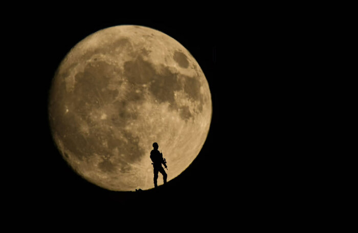 Люди стоят на фоне полной луны в Аргинегине, Гран-Канария, Испания. (Фото Borja Suarez):