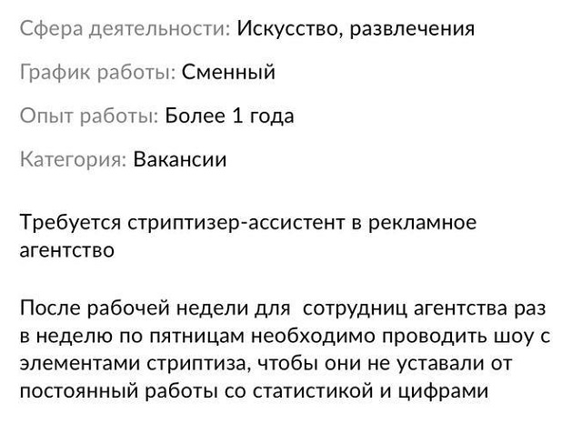 Кажется, что в Москве открылась вакансия мечты. Зарплата, как "айтишников", но при этом напрягать извилины не требуется от слова совсем. Плюс ко всему, работать надо только по пятница и то лишь пару часиков. Но не думайте, что это какой-то бессмысленный труд, работа действительно важная. Сотрудник выполняет важную миссию - это поддержка и утешение уставших работниц рекламного агентства. Итак, что же это за работа такая?