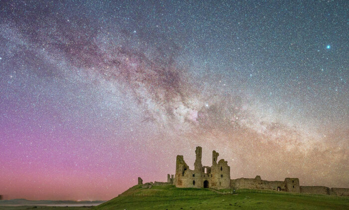 Восход Млечного Пути за замком Данстанбург в Нортумберленде, Великобритания. (Фото Miguel Medina):