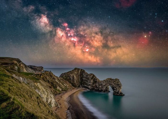 Млечный Путь поднимается над Дердл-Дор в Дорсете, Великобритания. Изображение состоит из 19 двухминутных экспозиций. (Фото Nick Bull):
