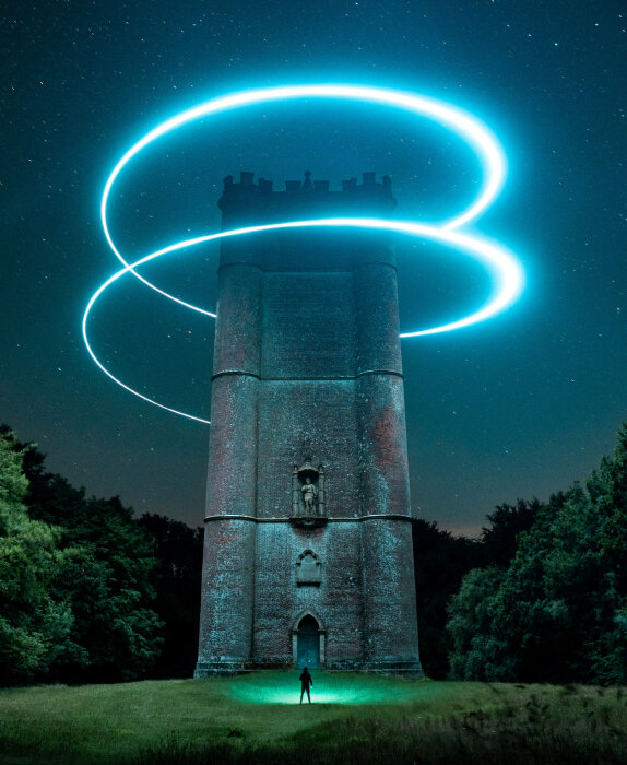 Световой ореол над Башней короля Альфреда в Саут-Брюэме, Сомерсет, Великобритания. (Фото Will Ferguson):