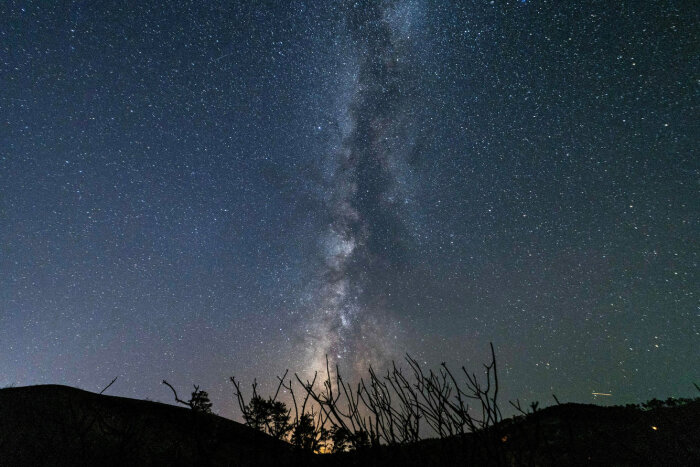 Млечный Путь виден в ночном небе за обугленными деревьями возле деревни Асклипиео на острове Родос, Греция. (Фото Nicolas Economou):