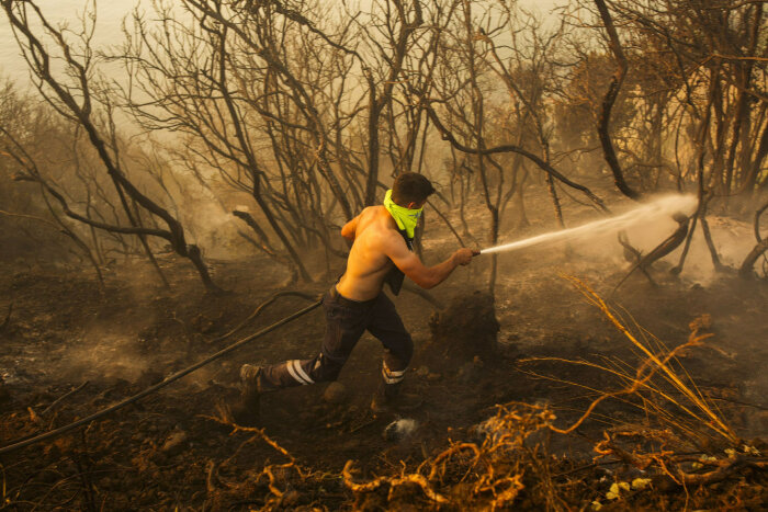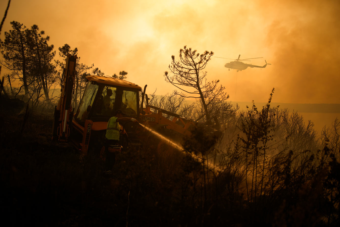 Турецкие пожарные тушат лесной пожар в Бейкозе, на окраине Стамбула, Турция. (Фото Emrah Gurel):