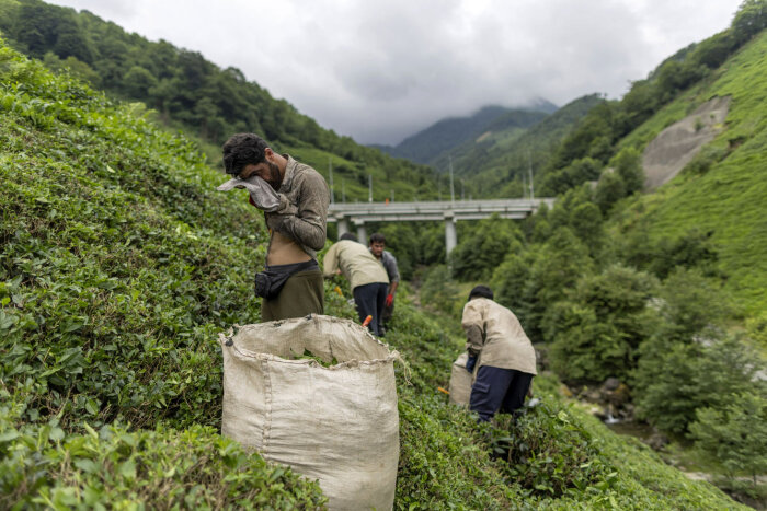Афганские мигранты собирают чайные листья на склонах района Хопа в Артвине, Турция. Из-за плохих условий жизни и режима талибов, в сезон сбора чая в Турции в основном работают афганские мигранты. (Фото Erdem Sahin):