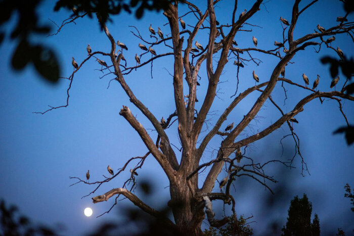 Аисты сидят на ветвях дерева возле плотины Хамзабей. (Фото Alper Tuydes):