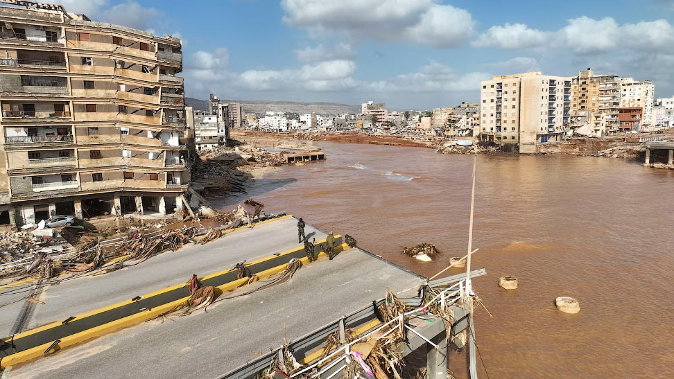 Широкий вид на размытую землю и обломки, оставшиеся после наводнения в городе Дерна. (Фото Abdullah Mohammed Bonja):