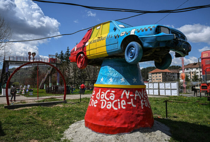 Инсталляция художника Иона Барбу, изображающая автомобиль DACIA. (Фото Daniel Mihailescu):