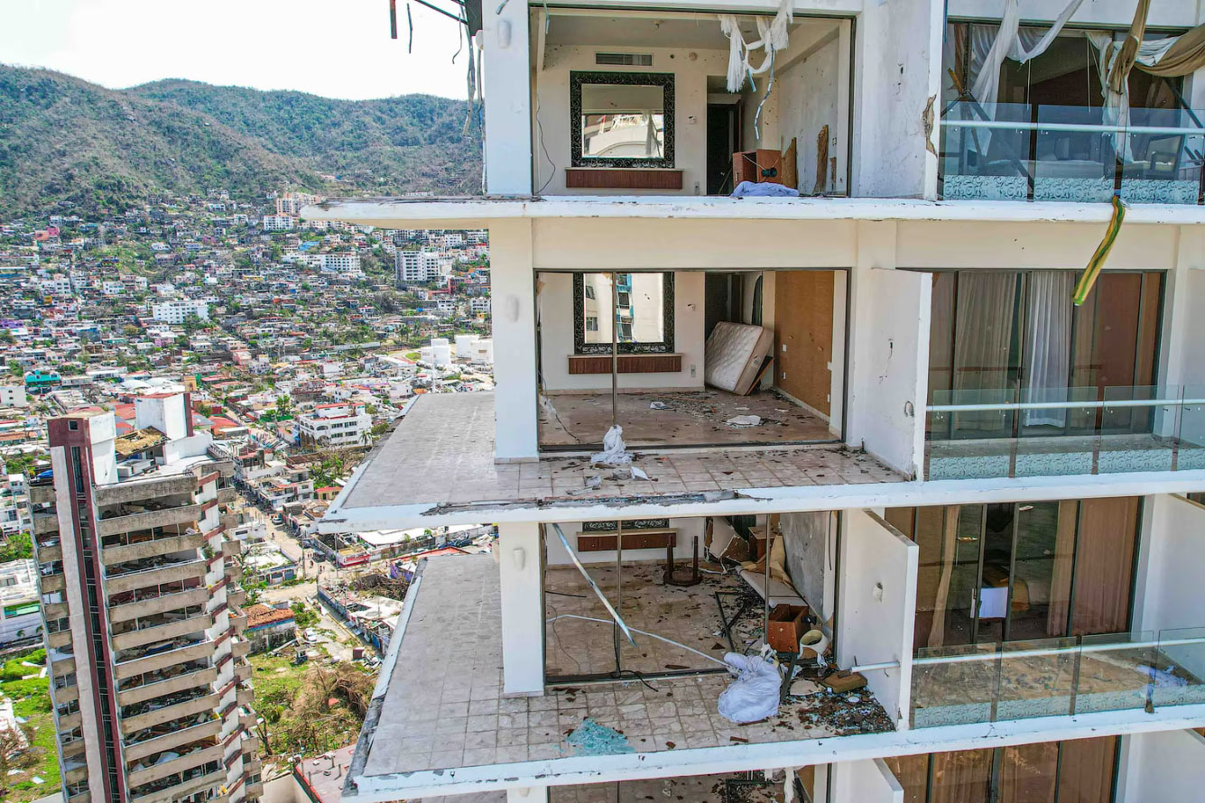 В результате урагана в штате Герреро были повреждены 1 электростанция, 26 подстанций, 37 линий электропередач, 10 тыс. фонарных столбов; около 500 тыс. жителей остались без электроснабжения. Повреждения получили не менее 220 тыс. домов, в том числе 600 отелей и кондоминиумов; на высоких этажах силой ветра выдавливало окна и выламывало стены. (Фото Rodrigo Oropeza):