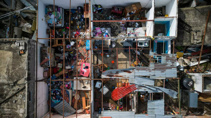 Вид с дрона на поврежденный ураганом дом с сорванной крышей в Пуэрто-Маркес, Мексика. (Фото Rodrigo Oropeza):