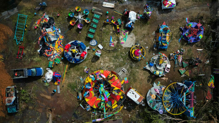 Вид с воздуха на поврежденные ураганом аттракционы и игры в Пуэрто-Маркес. (Фото Rodrigo Oropeza):