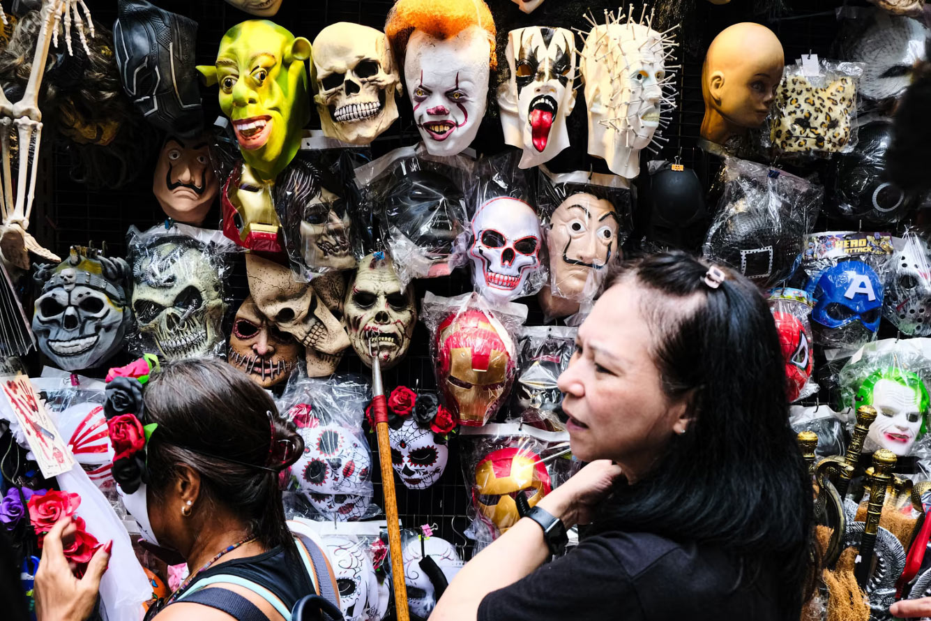 Жители Гонконга делают покупки на рынке, где продаются аксессуары для Хэллоуина. (Фото Sawayasu Tsuji):