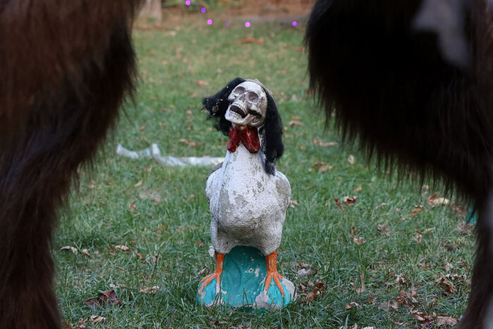 Жуткое украшение к празднику Хэллоуина возле дома в Торонто, Онтарио. (Фото Mert Alper Dervis):