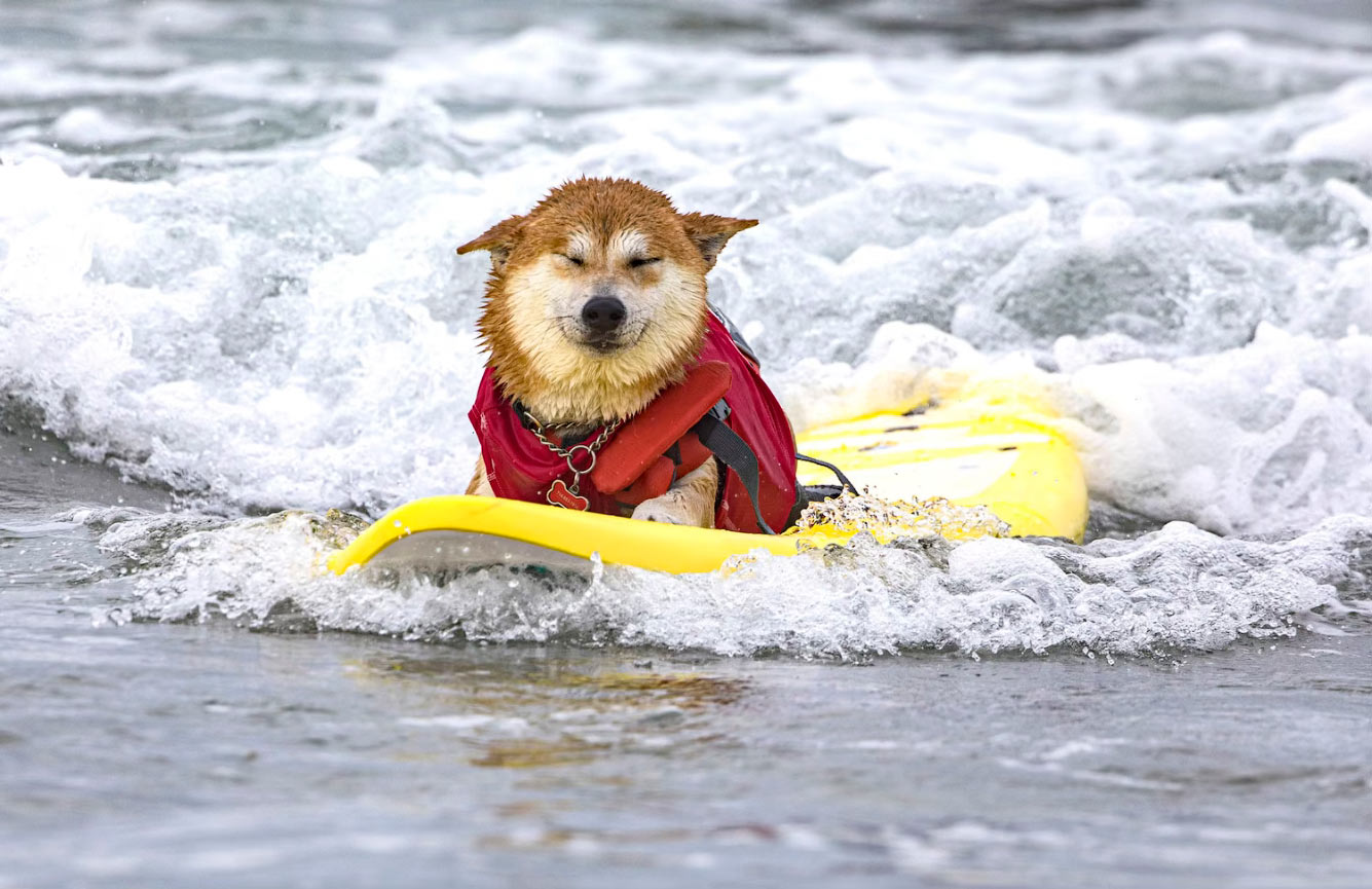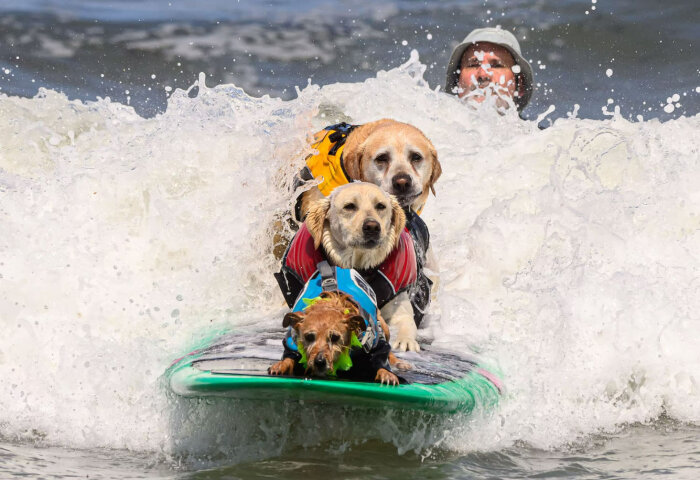 Чемпионат мира по серфингу с собаками в Пасифике, Калифорния. (Фото Josh Edelson):