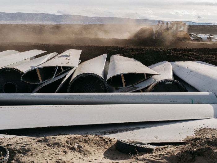 В окрестностях американского города Каспер есть полигон, на котором происходит утилизация лопастей от турбин ветрогенераторов. Причиной захоронения является несовершенство процессов утилизации, которые пока не позволяют полностью переработать лопасти.