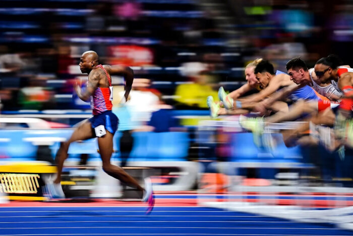 Забег на 60 метров с барьерами. (Фото Samuel Barnes/Siena Awards 2023):