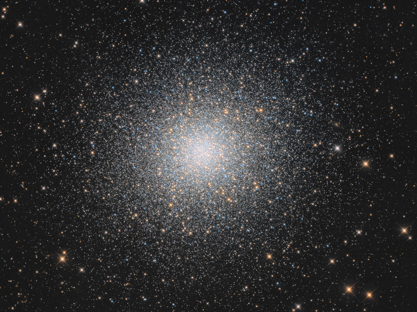 M13 — шаровое звёздное скопление в созвездии Геркулеса, это одно из самых ярких шаровых звездных скоплений на северном небе. (Фото Serge Brunier, Jean-François Bax, David Vernet OCA/C2PU):