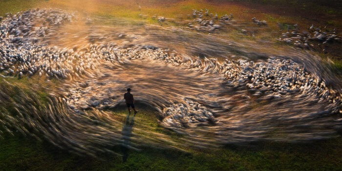 Время кормления тысяч уток в Бинь Динь, Вьетнам. (Фото © Ky Nhan Cao / The 14th Epson International Pano Awards):