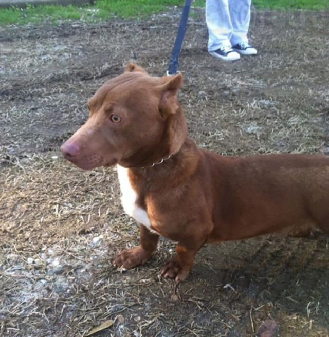 Можно ли скрестить питбуля и таксу? Казалось бы, что нет, ведь это такие разные породы. Однако, не бывает ничего невозможного. Вот, пожалуйста, так выглядит помесь питбуля и таксы. Выглядит песик так, будто бы его нарисовала нейросеть, но самый, что ни на есть, настоящий. Его зовут Рами и он живет в американской Джорджии. Так что будьте уверены, что "таксбули" существуют. Выглядит песик, конечно, неоднозначно. С одной стороны пугает, а с другой - умиляет.