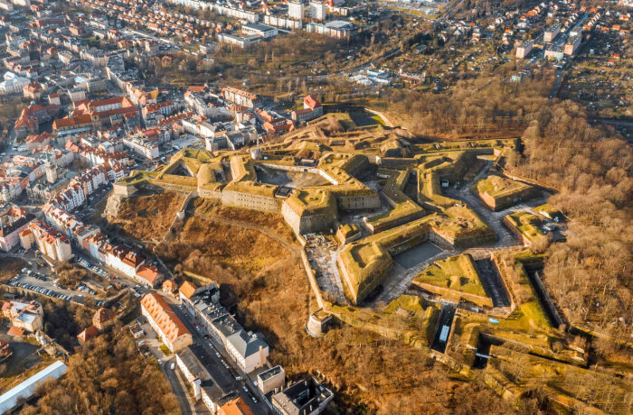 Форты-бастионы — это тип укреплений, который впервые появился более 500 лет назад в ответ на растущую мощь пушек на поле боя, с наклонными стенами и наклонными бастионами, которые позволяли защитникам лучше прикрывать любых нападающих. При взгляде сверху бастионная система имеет звездообразную форму.