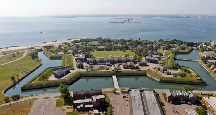 Национальный памятник Форт Монро находится у входа на Хэмптон-Роудс в Форт-Монро, штат Вирджиния. Форт, который был деактивирован в 2011 году, представлял собой военный объект, охранявший навигационный канал в Чесапикском заливе. (Фото Steve Helber):