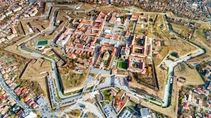 Вид с воздуха на цитадель Альба-Каролина, средневековую крепость в Алба-Юлии, Румыния. (Фото Oneblink CJ):