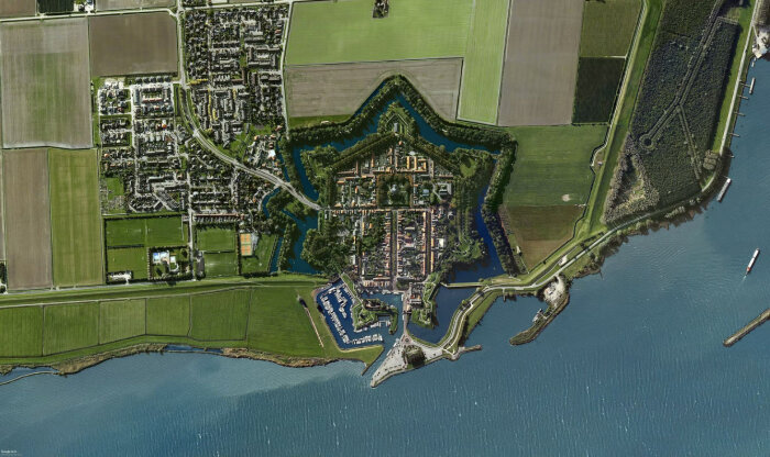 Спутниковый снимок укрепленного города Виллемстад в Нидерландах, сделанный на Google Earth. (Фото © Google, Inc.):