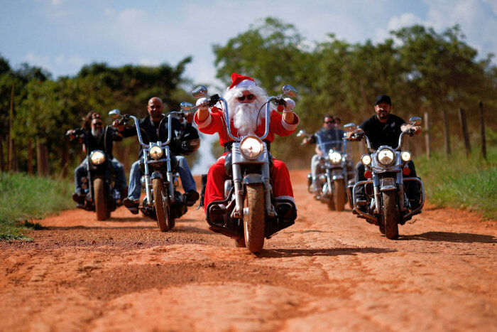 Санта-Клаус и Дед Мороз — это два разных персонажа, которые имеют свои особенности. Санта-Клаус изображается в красном костюме с белым мехом и длинной белой бородой. Он обычно ассоциируется с Рождеством и Новым годом, а также с подарками для детей. Дед Мороз же изображается в красном или голубом костюме с золотыми узорами и длинными белыми волосами. Он символизирует зиму и Новый год, а также празднование Масленицы. (Фото Adriano Machado):